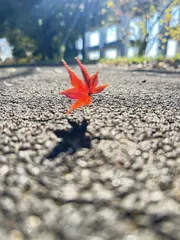 頑張る葉っぱ 落ち葉がなんと立っています。これはAIでもなんでもありませんよ自然な物です。