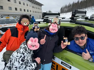 女子会⭐︎ゲレンデタクシー🚕 ゲレンデタクシー🚕新井選手のタクシーに乗りました💕しかも助手席に雪だらけのスキーブーツで乗り込むと「いっぱい滑りましたね」「はい!いっぱい滑りました〜」「僕はまだ滑ってないんだよね」とお話しできて超幸せ😍そして、「もりもりでお願いします!」とお願いするとバンバン走ってくれました💨降車する時スタッフさ