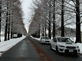 仲間と走る❄️冬の道 荒れた❄️冬の道✨SUBARU❄️雪の軌跡✨本格的な冬到来❄️雪道の洗い越し✨雪景の白いSUBARUWinter Drive✨✨仲間の走りメタセコイアを走り抜ける✨雪解けリフレクション✨熊川宿❄️雪景色✨