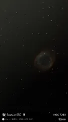 らせん星雲「神の目」撮影しました 今晩は、よく晴れていましたので、南の空の水瓶座NGC7293を撮影してみました。目玉に見えるのか「神の目」と呼ばれましたが、恒星が寿命を迎えて白色矮星になってガスや塵を放出したものです。iPhone上でコントラスト調整しましたが、画像処理をPC上できちんとできれば、より際立つかも知れません。