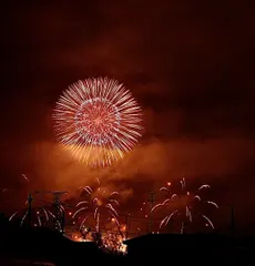 秋の花火大会 秋の花火大会です真夏の花火も良いですが涼しくなってからの花火大会もいいですよ今日は少し肌寒いです