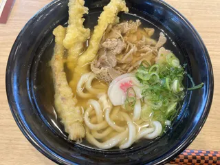初 資さんうどん 北九州発祥の おうどん屋さん資さんうどんに 初来訪してきました。お店推しのごぼう天かしわうどんを食べてみた。ごぼうは ステック状を天ぷらにしているので食感あり お汁は 少し甘めな 感じでしたがお席に置いて有る とろろこぶを入れると塩味が追加されて 美味しかったです。おでん🍢やミニ丼も食べ