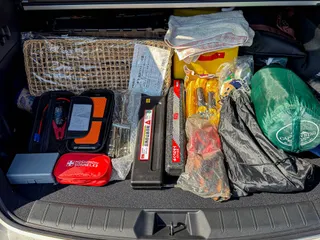 久々のラゲージ内チェック☑️ 今日は天気が良くて暖かい陽気だったので、久々にラゲージ内と積んでいるBOX内の中身などを確認しました。以前友人が秋に高速上で大きな地震に遭い車内で一晩過ごした事があったので、簡単な防寒の備え(フリース、ブランケット、防寒用アルミブランケットシート)は常に車内に置いてます。でもそれ以外の対応・対策グッ