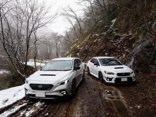 仲間と走る❄️冬の道 荒れた❄️冬の道✨SUBARU❄️雪の軌跡✨本格的な冬到来❄️雪道の洗い越し✨雪景の白いSUBARUWinter Drive✨✨仲間の走りメタセコイアを走り抜ける✨雪解けリフレクション✨熊川宿❄️雪景色✨