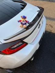 トランクスポイラー装着 カタログで見るより存在感がある印象です。 ドライカーボンスポイラーも魅力的だけど、大人カスタムにはこちらの方が落ち着いた感じでしょうか。 さらにパンダ感が出てきました。あとは、シャークフィンとドアハンドルを黒くしたいなぁ、と思ってます☺️