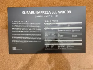 IMPREZA 555 WRC98 TAMIYA PLAMODEL FACTORY TOKYOにて展示中ですここは市販車と一緒ですねぇ。。。。