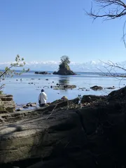 久々の旅 DAY2 朝、高岡駅前を出発しました⭐️雨晴海岸近辺の駐車場がどこも満車🈵で💦氷見線の雨晴駅の駐車場に駐車させてもらいました☺️根がビビリなので、観光するのに駅に駐車して良いものか写真のお姉様2人組に尋ねると何故か意気投合してしまい💦1時間近く海岸でお話しして新しいお友達ができました⭐️旅の醍醐味だと思います