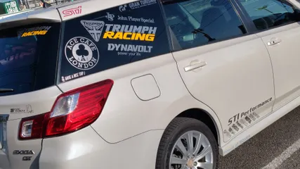 NEW ステッカーチューン♪ やってもひとつも速くはならない「ステッカーチューン」を敢行しました。今回は左右後方の窓です。 まずは、昨今の乾燥と黄砂で黄色っぽかったエクシーガを、軽く洗車。 左右後方の窓の不用なステッカーを剥がして、シンナー等で拭き上げて、 位置決めと気泡対策のために霧吹きで濡らしな